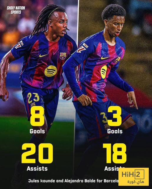هاي كورة – حقق الثنائي أليخاندرو بالدي وجول كوندي أرقامًا تهديفية مميزة مع فريق برشلونة ، جاءت على النحو التالي :
