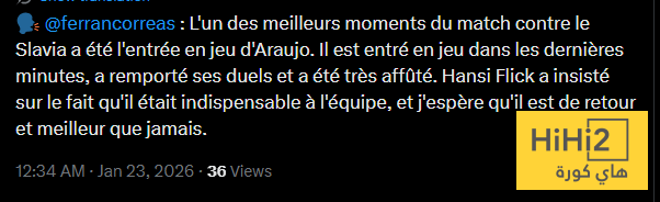 ” كانت إحدى أفضل لحظات المباراة ضد سلافيا براغ هي دخول اراوخو الى ارض الملعب .. دخل في الدقائق الاخيرة ، وفاز في الالتحامات ، وكان في قمة تركيزه ، واكد هانسي فليك على انه لاعب لا غنى عنه للفريق ، آمل ان يعود اقوى من أي وقت مضى ” .