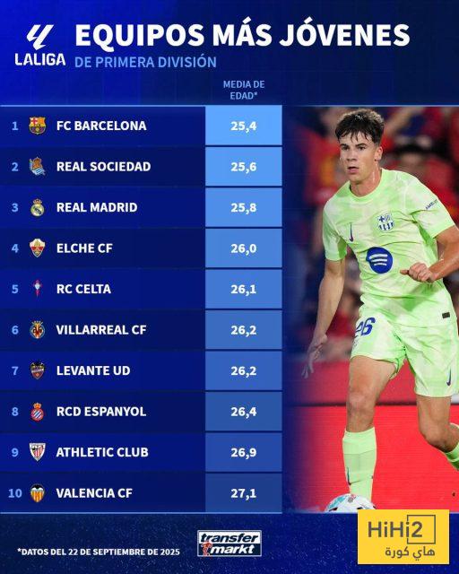 هاي كورة – يتصدر نادي برشلونة قائمة أقل معدل أعمار في الليغا الإسبانية هذا الموسم حيث بلغ 25.4 عام يليه نادي ريال سوسيداد.