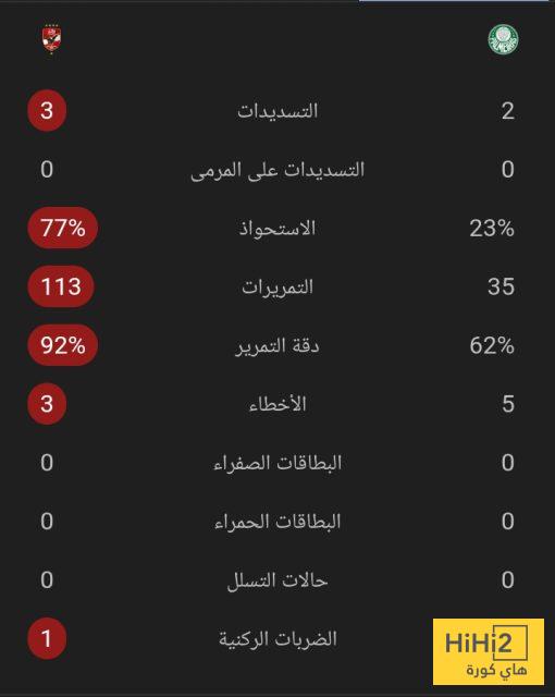 إليكم إحصائيات 20 دقيقة بين الأهلي و بالميراس: