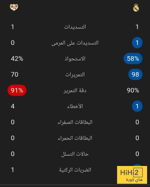 إليكم إحصائيات 20 دقيقة بين ريال مدريد و رايو فاليكانو :