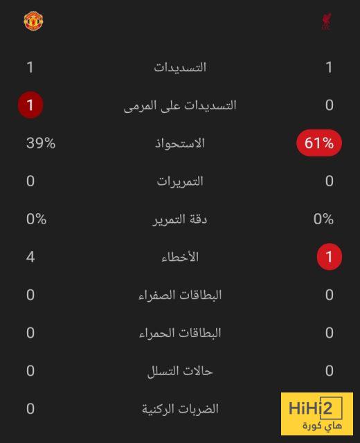 إحصائيات 20 دقيقة بين مانشستر يونايتد و ليفربول: