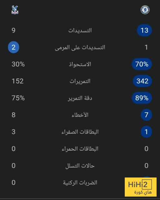 إليكم إحصائيات 60 دقيقة بين تشيلسي و كريستال بالاس: