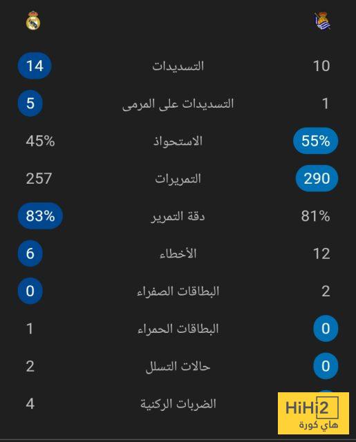 إليكم إحصائيات 60 دقيقة بين ريال مدريد و سوسيداد: