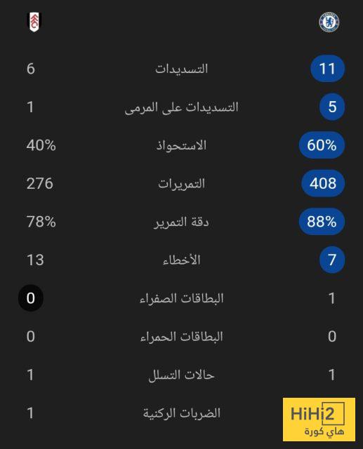 إليكم إحصائيات 70 دقيقة بين تشيلسي و فولهام: