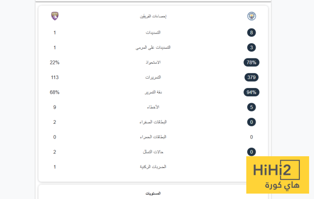 إليكم إحصائيات الشوط الأول من اللقاء: