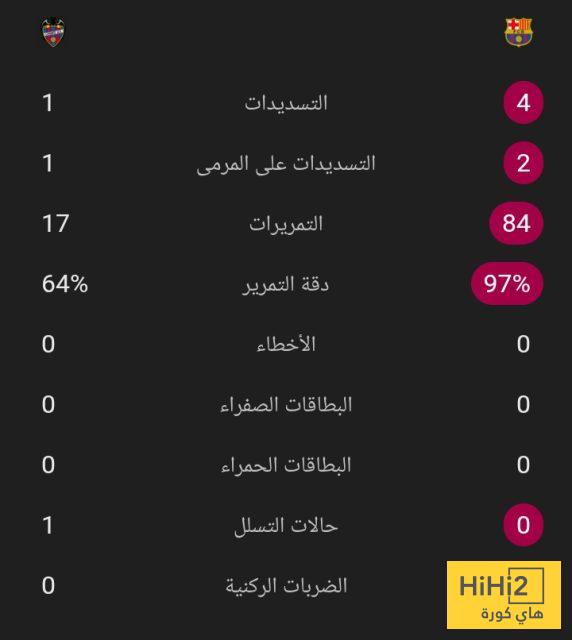 إحصائيات اول 10 دقائق بين برشلونة و ليفانتي :