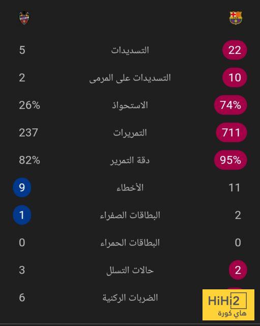 إليكم إحصائيات مباراة برشلونة و ليفانتي :