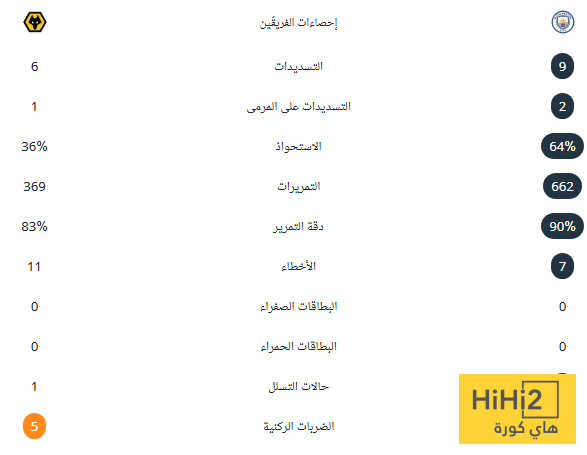 وسيطر السيتي على مجريات اللقاء، حيث جاءت أغلب الإحصائيات في صالحه.