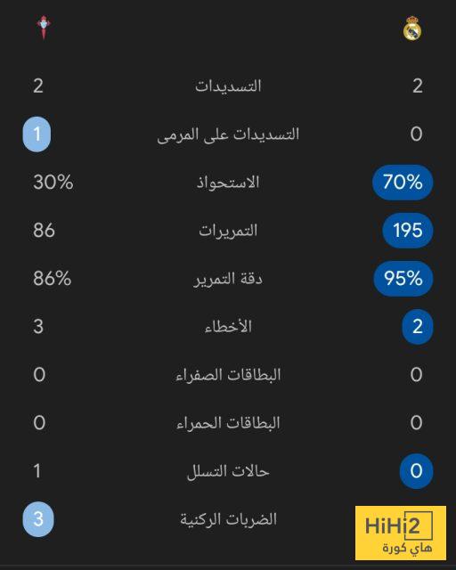 إليكم إحصائيات منتصف الشوط الأول بين ريال مدريد و سيلتا فيغو: