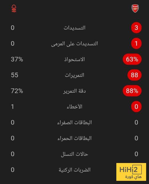 إليكم احصائيات 15 دقيقة بين أرسنال و نوتنغهام: