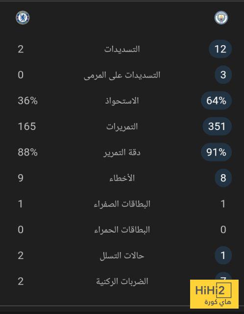 احصائيات 65 دقيقة ببم مانشستر سيتي و تشيلسي :