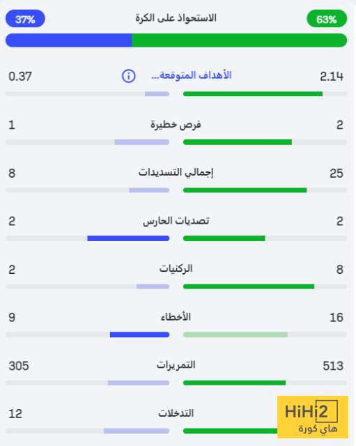إليكم احصائيات المباراة: