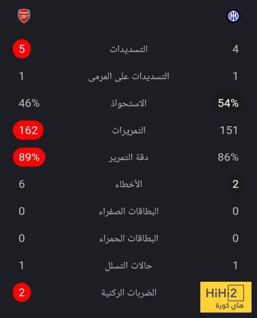 إليكم احصائيات نصف ساعة بين أرسنال و انتر ميلان:
