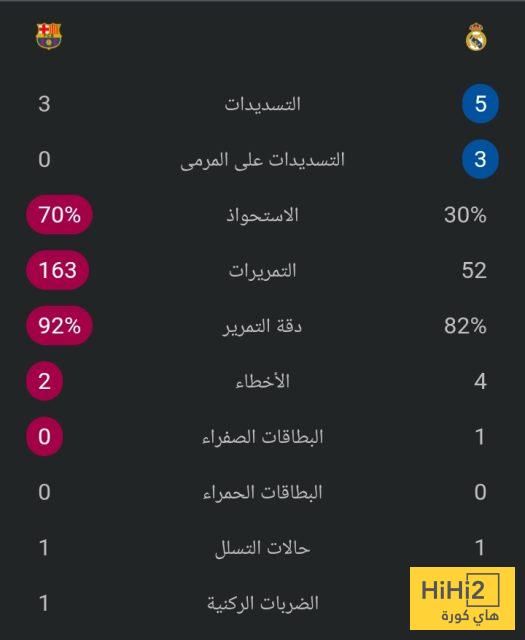 احصائيات نصف ساعة بين ريال مدريد و برشلونة :