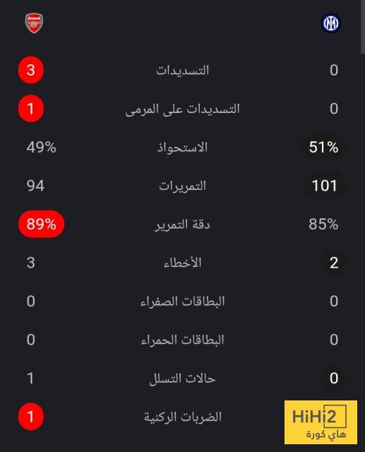 إليكم احصائيات ١٥ دقيقة بين أرسنال و انتر ميلان :