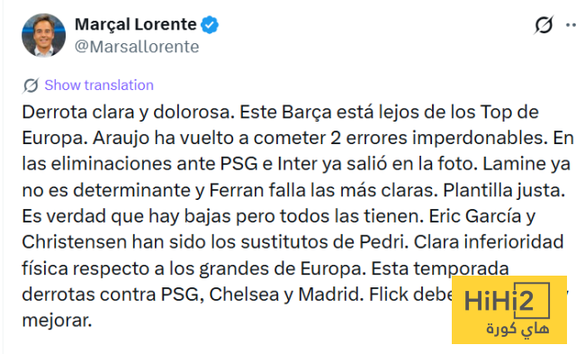 هزيمة واضحة ومؤلمة . برشلونة هذا بعيد كل البعد عن كبار أوروبا . ارتكب أراوخو خطأين لا يُغتفران . كان مسؤولاً أيضاً عن الإقصاءات ضد باريس سان جيرمان وإنتر . لم يعد لامين حاسماً ، وفيران يُهدر أوضح الفرص . الفريق في حالة تراجع واضحة . صحيح أن هناك إصابات ، لكن الجميع يعاني منها . حل إريك غارسيا وكريستنسن بديلين لبيدري . هناك نقص بدني واضح مقارنة بعمالقة أوروبا . هذا الموسم ، خسر الفريق أمام باريس سان جيرمان وتشيلسي وريال مدريد . فليك بحاجة إلى إعادة النظر في أدائه وتحسينه .