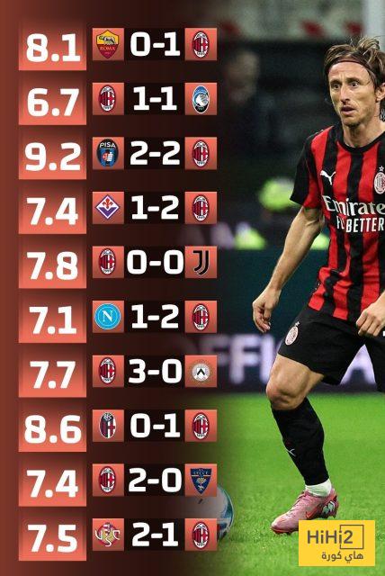 تقييم مودريتش في المباريات العشر التي لعبها مع الميلان يعكس تلك العروض حيث لم ينزل عن 7 من 10 سوى مرة واحدة كان قريبا خلالها من 7 .