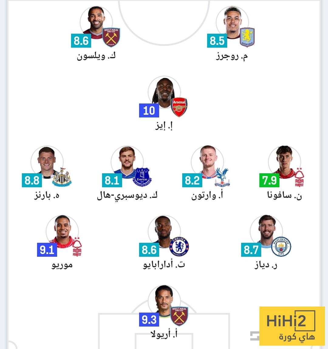 التشكيلة شهدت تواجد إيزي نجم أرسنال ، وروبن دياز مدافع مانشستر سيتي ، وبارنز لاعب نيوكاسل ، وجاءت على النحو التالي :