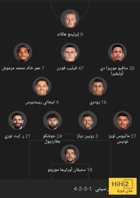 إليكم الرسم التكتيكي المتوقع لـ مانشستر سيتي أمام يوفنتوس: