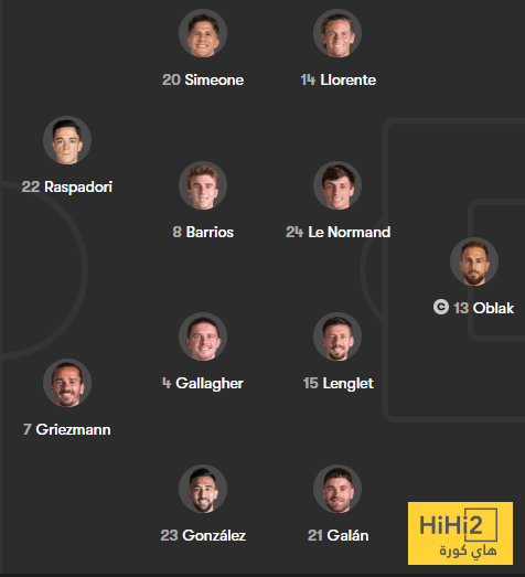 الرسم التكتيكي لتشكيلة أتلتيكو مدريد: