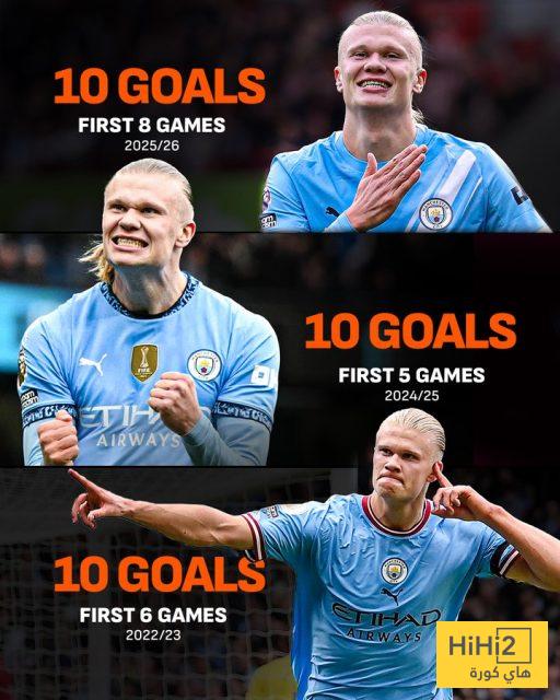 وذكر موقع لايف سكور أيضًا أن هالاند كان أول من سجل 10 أهداف في أول 6 جولات في موسم 2022-2023، ثم في أول 5 جولات بموسم 2024-2025.