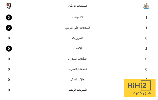 وشهدت إحصائيات المباراة تفوق من جانب بورنموث من حيث عدد المحاولات على مرمى الماكبايس.