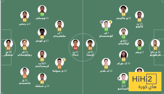 وقدم موقع سوفا سكور تقييمات متوسطى لكلا الفريقين في الشوط الأول، مع أفضلية للاعبي اليوفي بسبب تقدمهم بهدف نظيف.