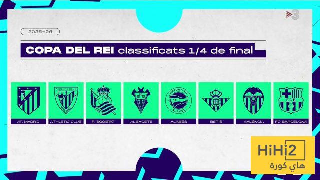 بصعود برشلونة اكتملت الفرق الثمانية المتأهلة لربع نهائي كأس ملك إسبانيا وهم: