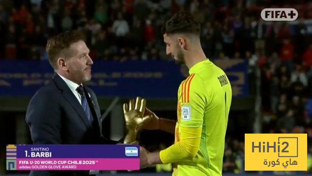 2- جائزة القفاز الذهبي التي تمنح لأحسن حارس في الدورة نالها الارجنتيني سانتينو باربي