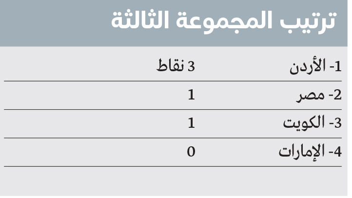 ويمرّ الأبيض بمرحلة حرجة، إذ يخوض اللقاء بحثاً عن تعويض عقب خسارته أمام المنتخب الأردني 1-2، إذ يحتل المركز الأخير دون رصيد في المجموعة التي يتصدّرها «النشامى» بثلاث نقاط مقابل نقطة لكل من المنتخبين المصري والكويتي اللذين تعادلا في الجولة الأولى 1-1، ما يجعل من العلامة الكاملة ضرورة قصوى للمنتخب الوطني إذا أراد المضي في رحلة البحث عن بطاقة مؤهلة للدور الثاني.