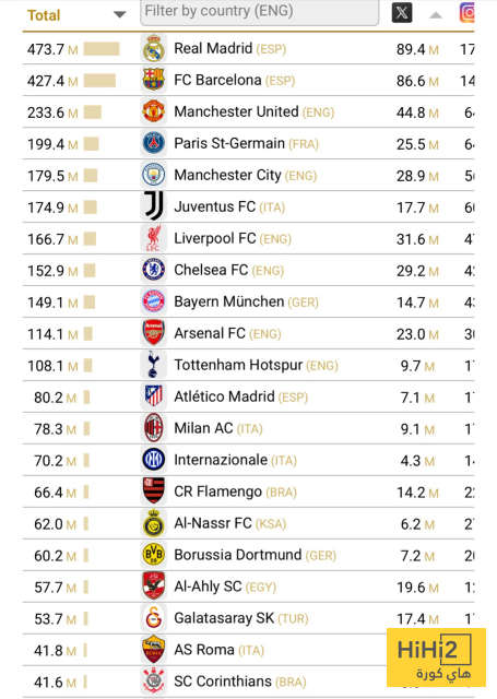 في المرتبة 24 عالميًا، جاء نادي الهلال، الذي شهد زيادة ملحوظة في عدد متابعيه بفضل وجود لاعبين دوليين بارزين ومشاركته الفعالة في البطولات القارية.