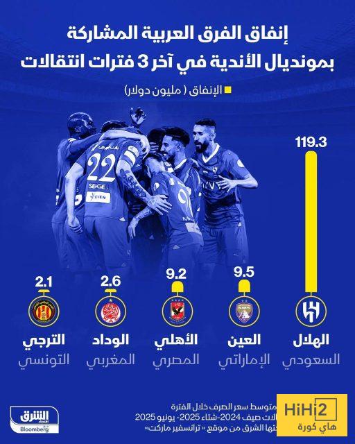 هاي كورة – كشفت إحصائية حديثة صادرة عن موقع “الشرق بلومبرغ”، أن نادي الهلال السعودي هو الأكثر إنفاقًا بين الأندية العربية المشاركة في كأس العالم للأندية، خلال آخر ثلاث فترات انتقالات.