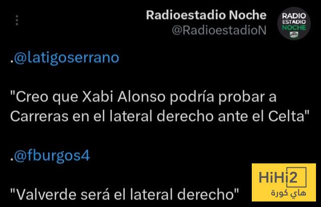 ميغيل: “أعتقد أن تشابي ألونسو قد يقوم بتجربة كاريراس في مركز الظهير الأيمن ضد سيلتا فيغو”.