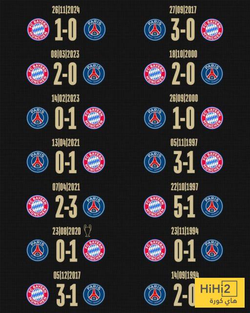 في آخر أربع مواجهات جمعت الفريقين، خرج العملاق البافاري فائزًا دون أن تهتز شباكه بأي هدف من الفريق الفرنسي.