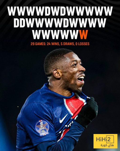 وتمكن باريس من تجنب الخسارة في 29 جولة، حيث فاز في 24 مباراة وتعادل في 5 مباريات، والآن يطمح الفريق أن يستمر على هذا المنوال حتى نهاية الموسم، ليحقق اللقب دون هزيمة.