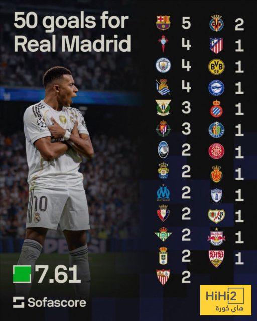 مبابي هز شباك برشلونة بـ5 أهداف، ثم سيلتا فيغو بـ4 أهداف ومثله فريق مانشستر سيتي الانجليزي.