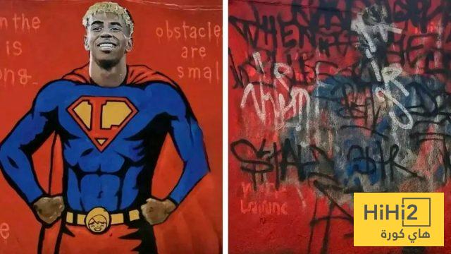 هاي كورة : احد الرسومات الجدارية التي انشأها بعض المحبين للفتى الذهبي لامين يامال في وقت سابق واستمرت لعدة اشهر انتهت هذا اليوم على يد اشخاص مجهولين حيث تم طمسها بشكل كامل وكتبت العديد مم الانتقادات والعبارات ضد اللاعب.