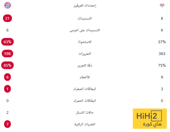 وبتلك النتيجة رفع البايرن رصيده من النقاط إلى 76 نقطة في المركز الأول، بينما توقف رصيد لايبزيغ عند 50 نقطة في المركز الخامس.