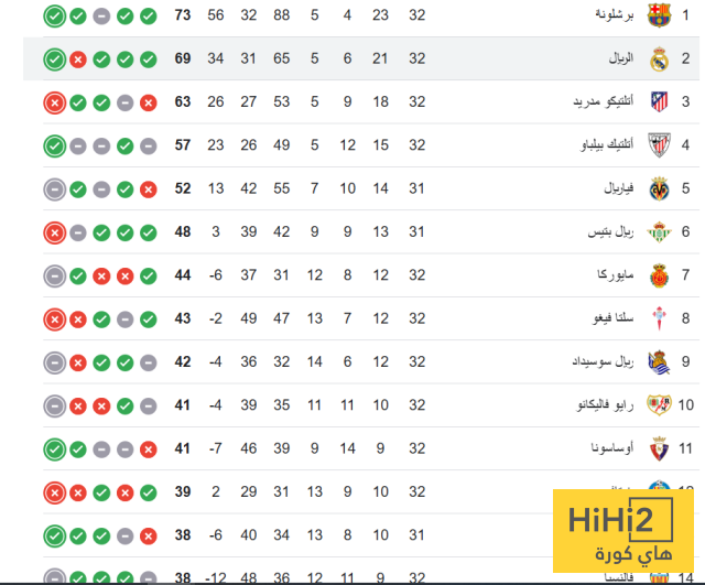 إليكم ترتيب الدوري الإسباني: