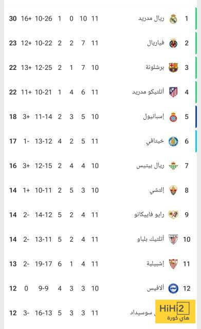 فيما يلي ترتيب الدوري الإسباني قبل مباريات اليوم :