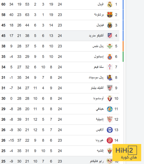 اليكم ترتيب الليغا: