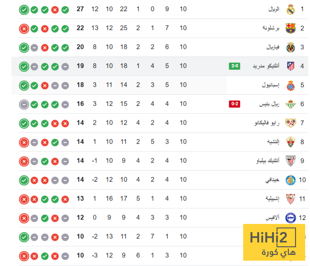 - ترتيب الدوري الاسباني