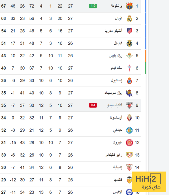 اليكم ترتيب الليغا :