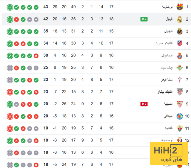 - ترتيب الدوري الاسباني