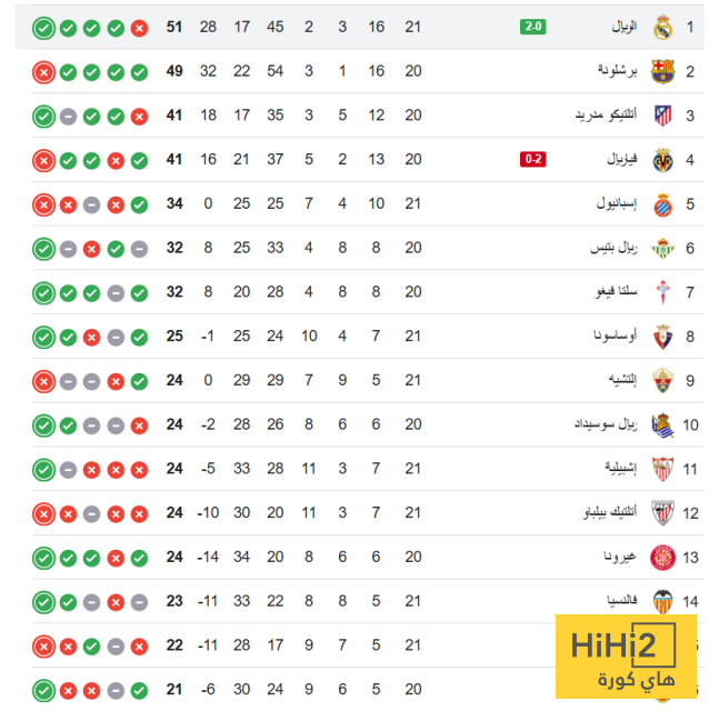 - ترتيب الدوري الاسباني