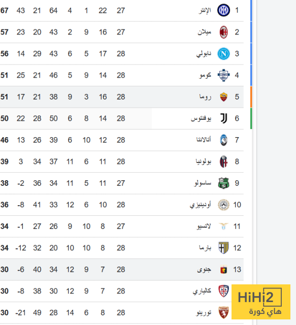 - ترتيب الدوري الايطالي