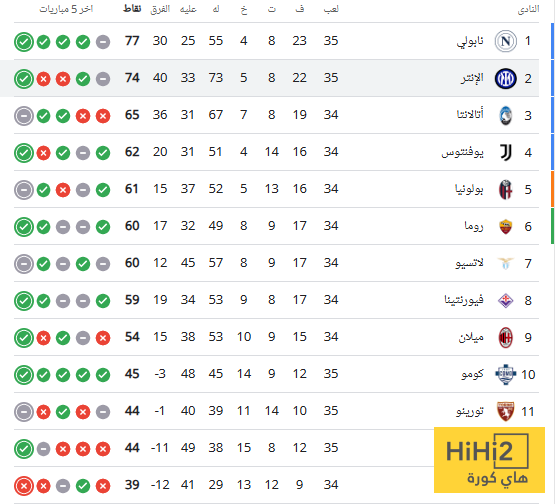 انتر ميلان ارتفع رصيده الى 74 نقطة في وصافة ترتيب الدوري الايطالي خلف المتصدر نابولي بثلاث نقاط، فيما تجمد رصيد هيلاس فيرونا عند النقطة 32 في المركز الـ 15.