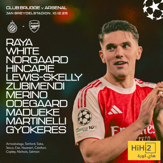 هاي كورة – أعلن ميكيل أرتيتا عن تشكيلة أرسنال الرسمية لمباراة كلوب بروج في الجولة السادسة من دوري أبطال أوروبا .