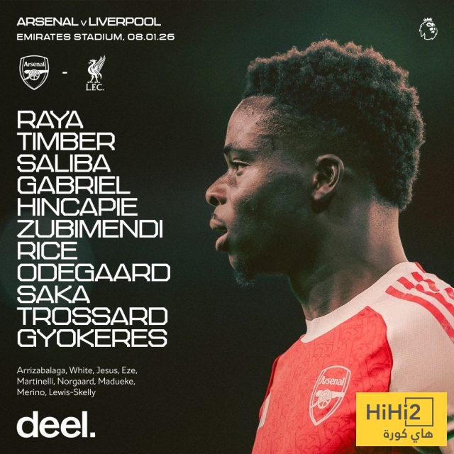 إليكم تشكيلة أرسنال الرسمية للقاء ليفربول :